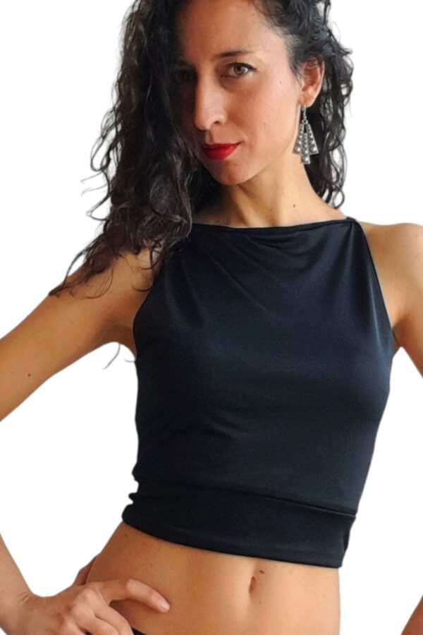 Top versátil ¡Elegí cuál es el frente y cuál la espalda! Ideal para prácticas, milongas o para vestirte elegante. Confeccionado en seda fría, lo que aporta frescura y elegancia. Suave al contacto con la piel.