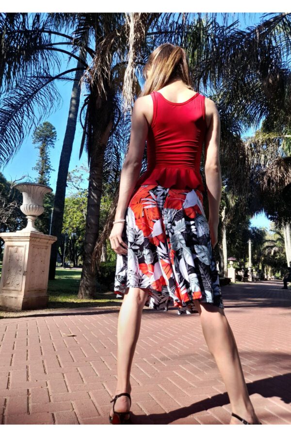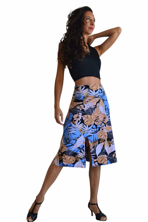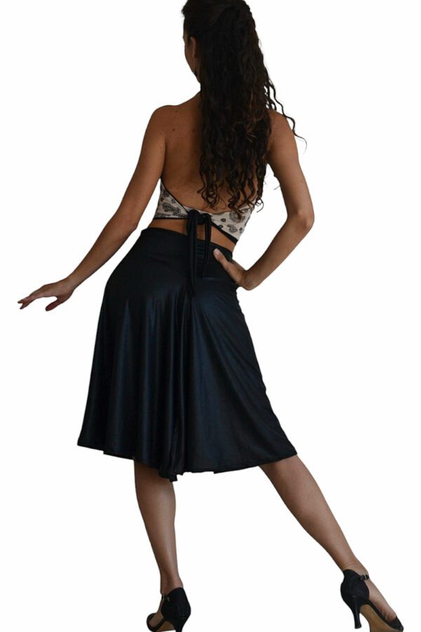 - Falda elastizada evasé con un tajo delantero que brinda sensualidad y otro atrás para darle un extra al movimiento.
